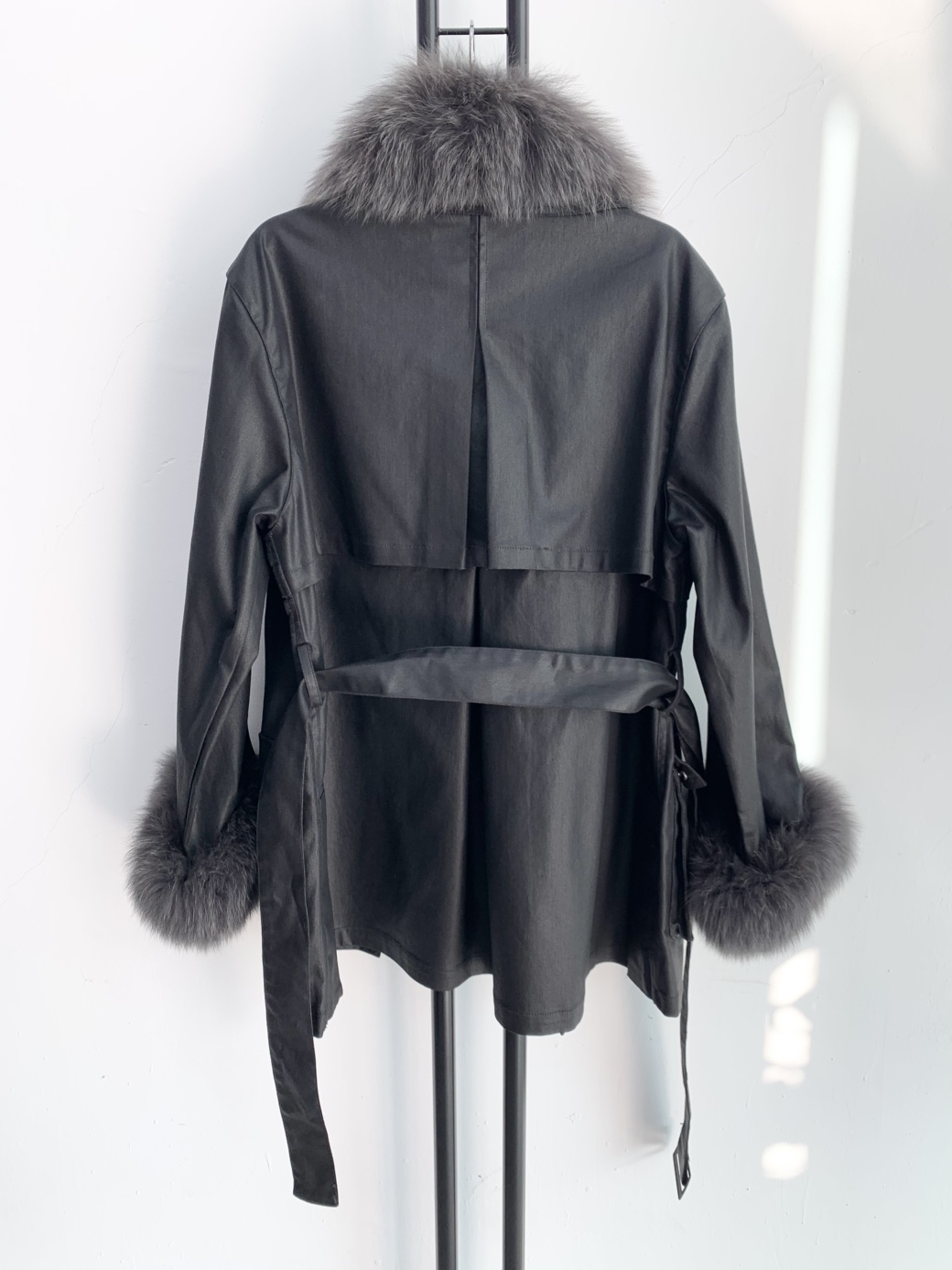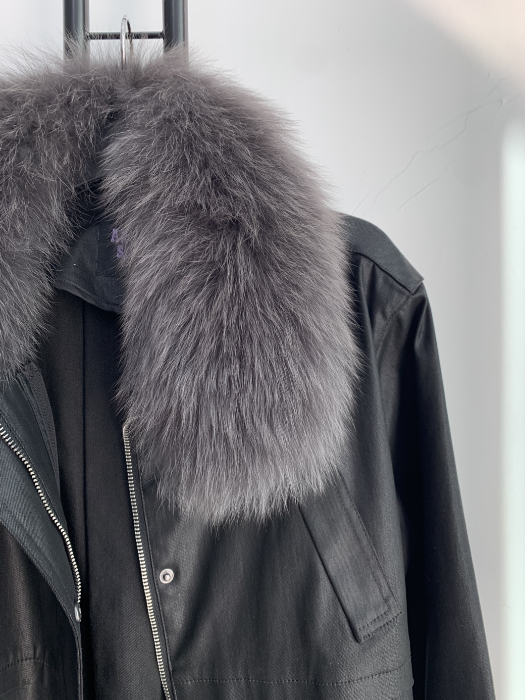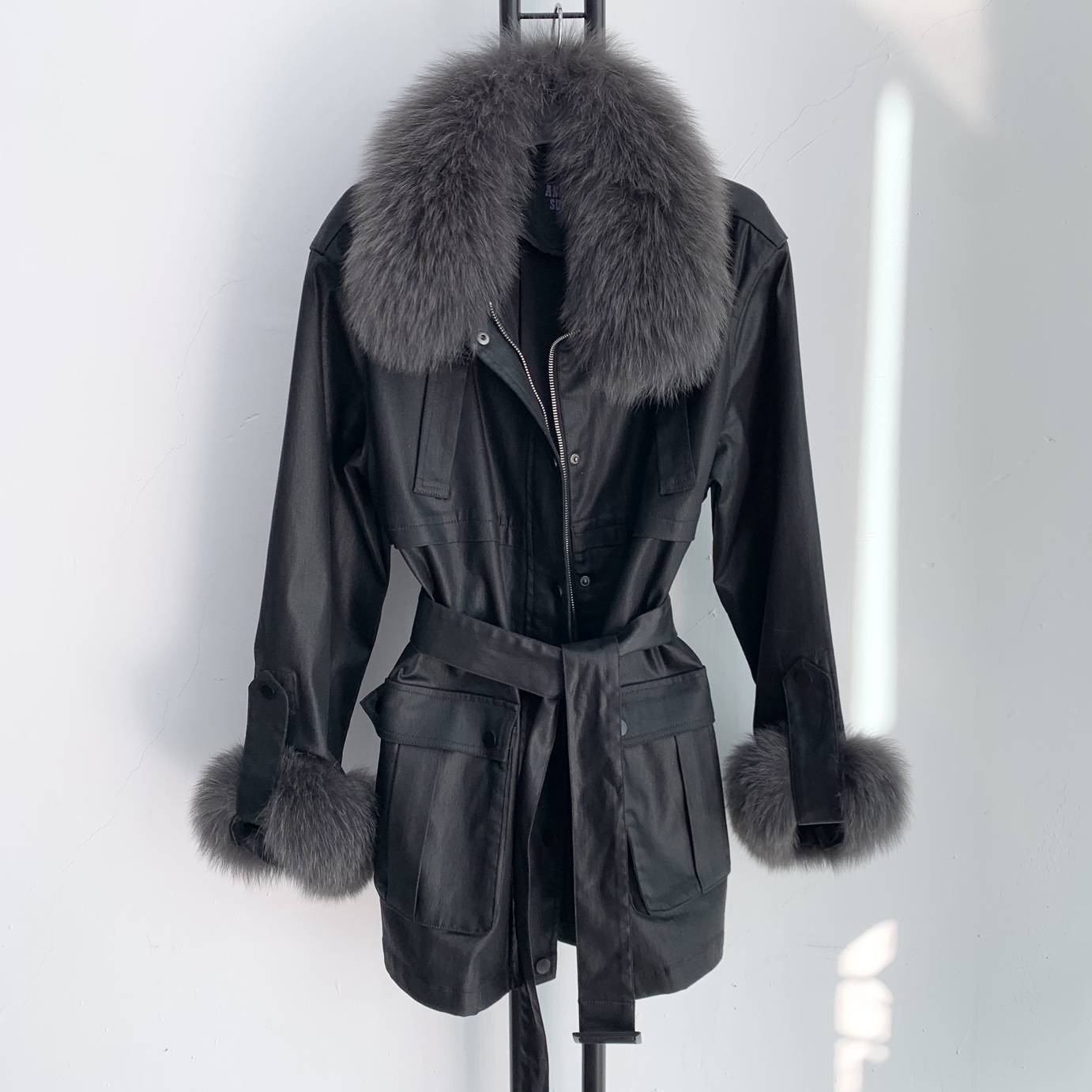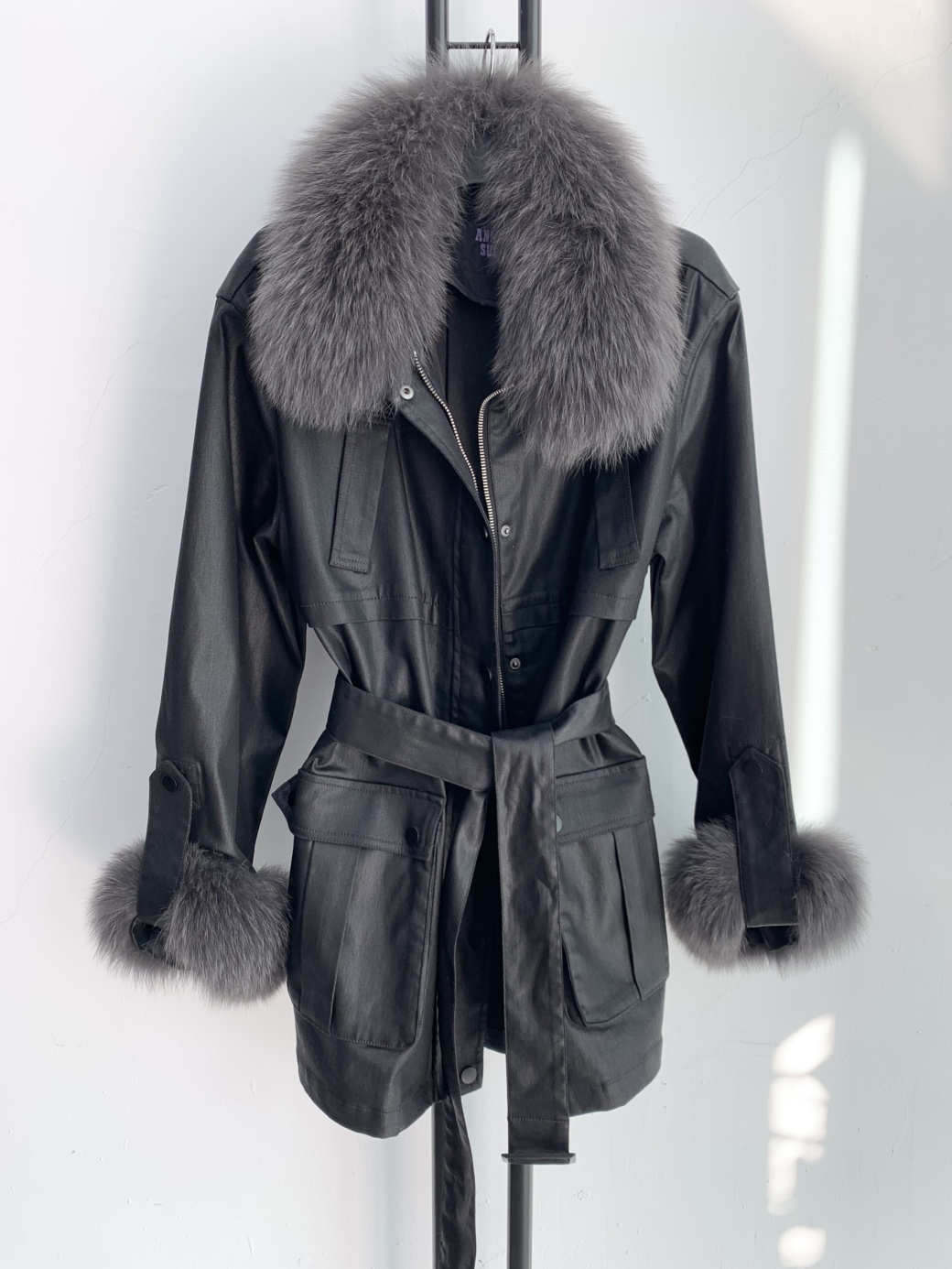 고급스러운 폭스퍼가 넥과 손목에 트리밍되어 있습니다.