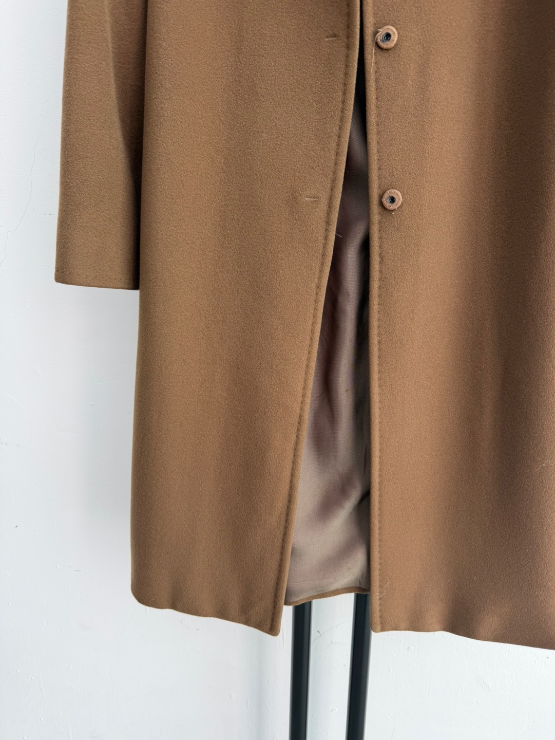 라나버진울과 캐시미어 혼방 소재로 원단감이 매우 뛰어나며 고급스러워요.버튼으로 잠그는 스타일입니다.
