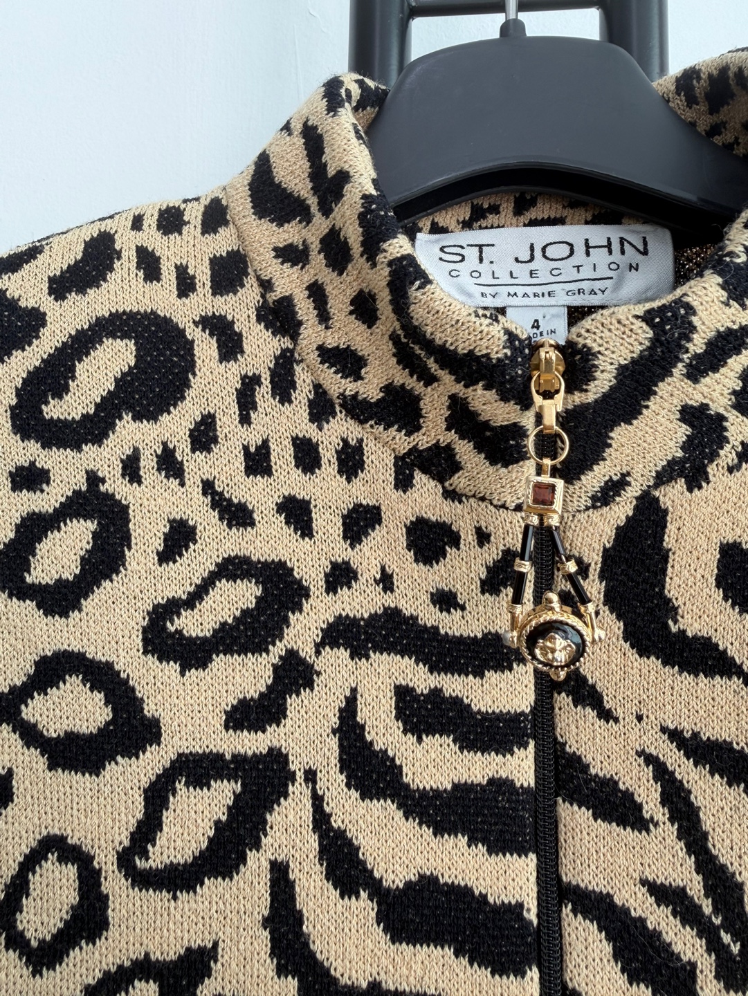 ST.JOHN 메리그레이 레오파드 니트 자켓입니다.